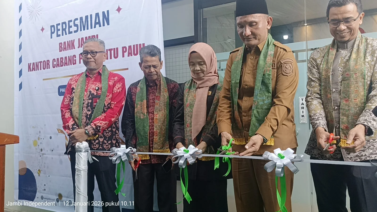 Bupati Sarolangun dan Dirut Bank Jambi Potong Pita Peresmian Kantor Cabang Pembantu di Kecamatan Pauh