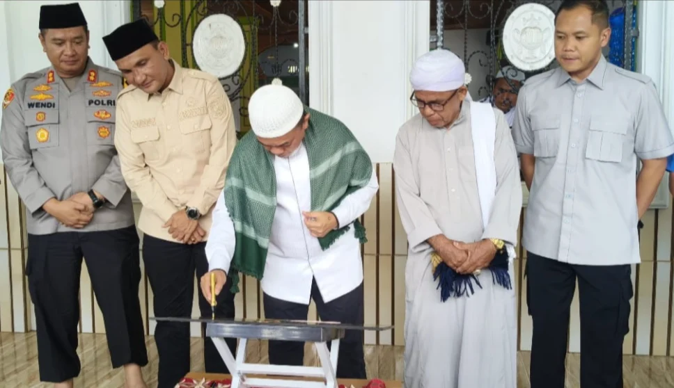 Penandatanganan Prasasti berlangsung di Masjid Jami’ Al Muhajirin, Pasar Gerabak, Desa Pekan Gedang.