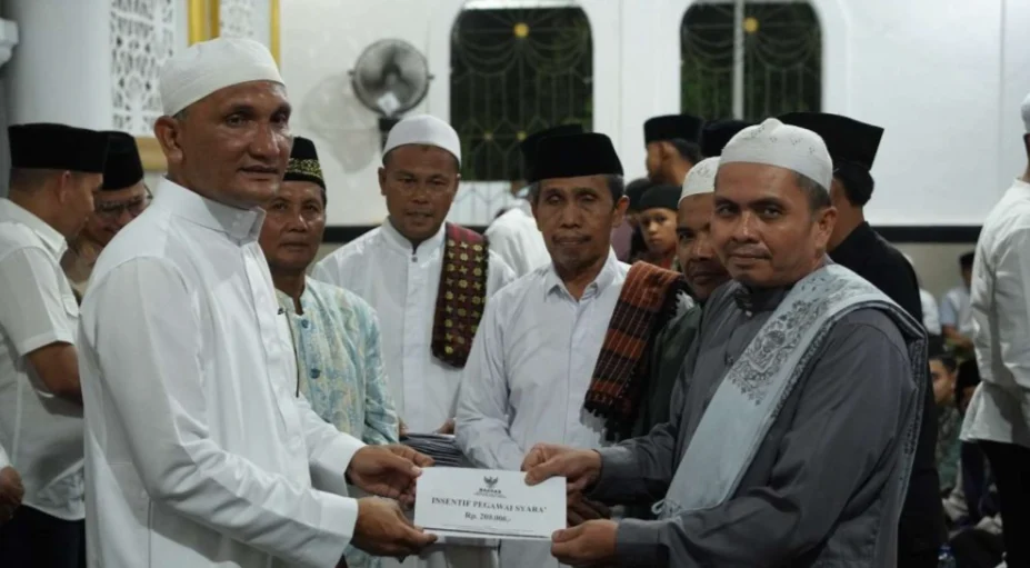 SAROLANGUN –Bupati Sarolangun H Hurmin bersama Forkopimda Kabupaten Sarolangun Senin (23/2/2026)melakukan kegiatan safari Ramadhan 1447 Hijriyah, di Mesjid Baiturrahman, Desa Bukit Kecamatan Pelawan.