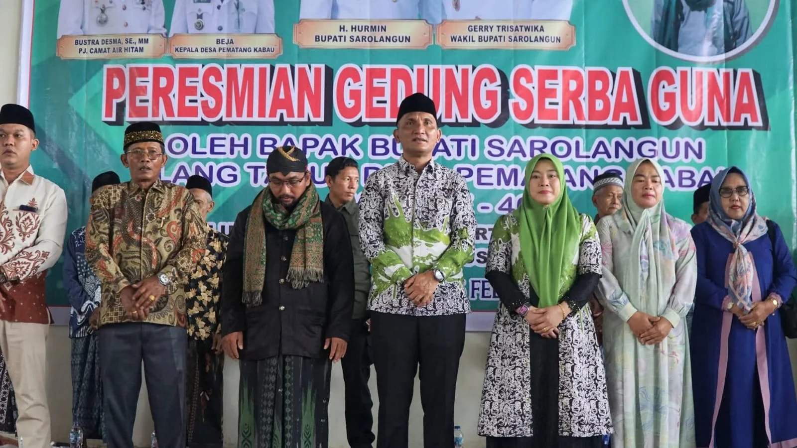” Pada kesempatan yang berbahagia ini kita juga melaksanakan peresmian Gedung Serbaguna Desa Pematang Kabau, Pembangunan Gedung ini merupakan salah satu wujud komitmen Pemerintah Desa dalam sarana dan prasarana yang memadai untuk mendukung kegiatan Pemerintahan, Kemasyarakatan, Kepemudaan,serta berbagai kegiatan Sosial dan keagamaan.” Ujar Bupati Hurmin (*)