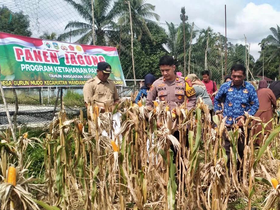 SAROLANGUN – Polsek Mandiangin IPTU Reza Rahmat Mulya, S. Tr.k,M.Si Senin (17/11/2025) Turun bersama Kelompok Tani Melakukan Panen Jagung di Desa Gurun Mudo.