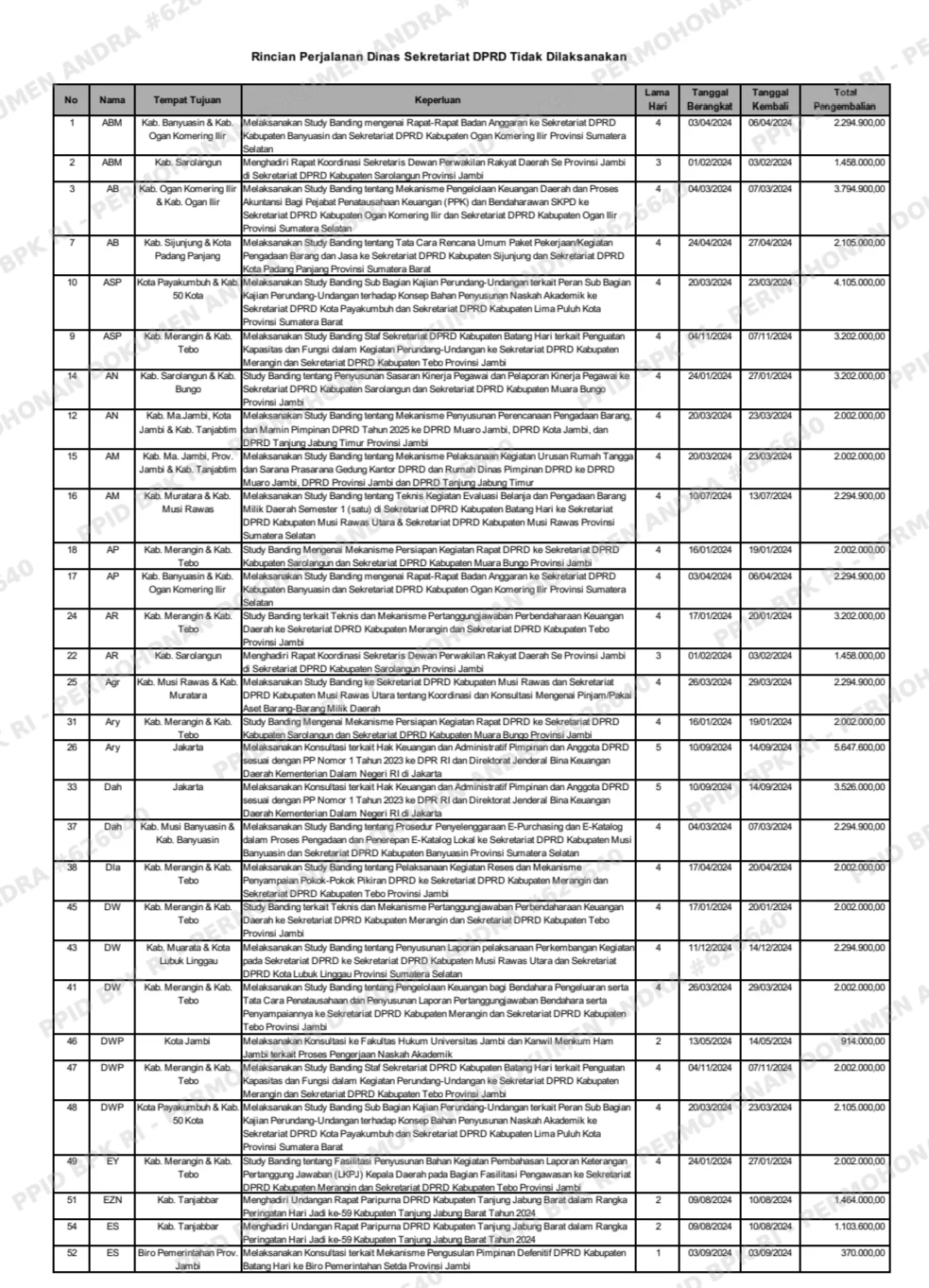 Rp 398.039.000,00 Hasil pemeriksaan dokumen dan konfirmasi kepada pelaksana perjalanan dinas diketahui bahwa 21 Anggota DPRD Kabupaten Batang Hari tidak melaksanakan perjalanan dinas.